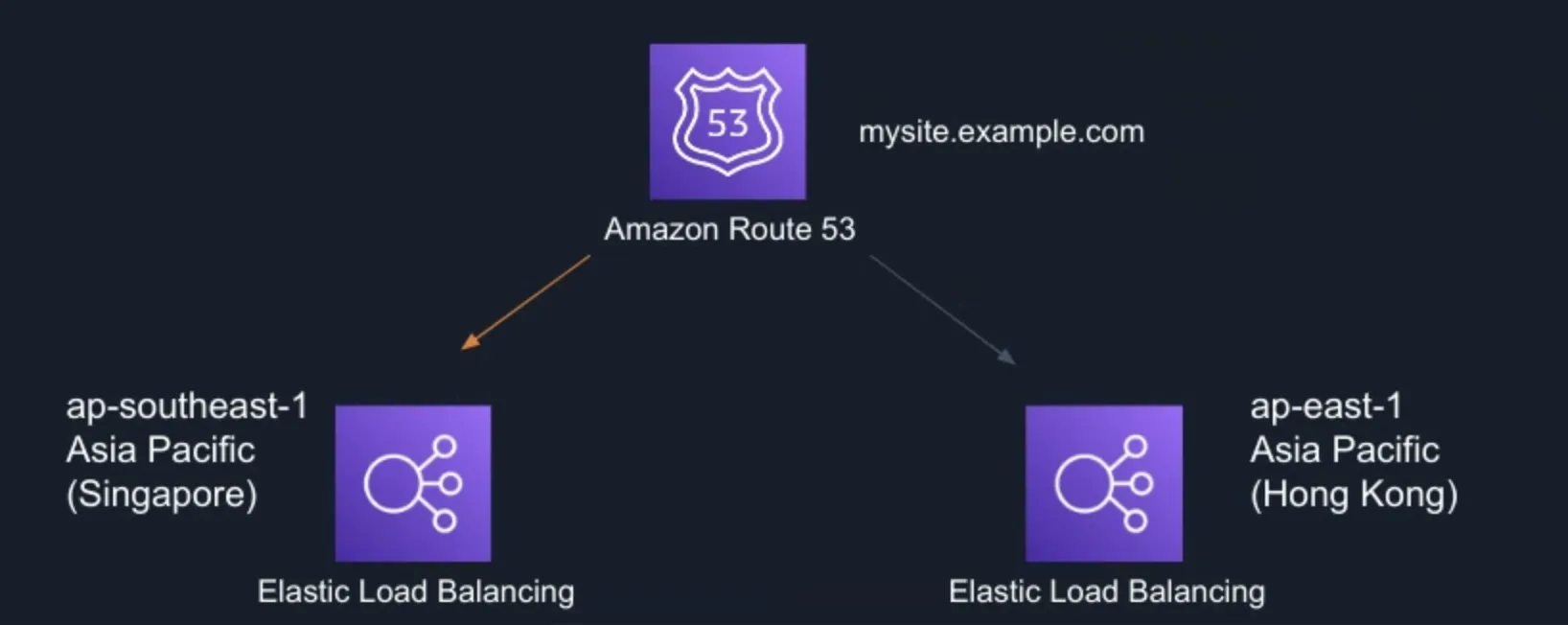 Let me give you an example, such as deploying a website to an environment in Singapore, and deploying a backup environment in Hong Kong at the same time. Through the Route53 domain name system, the domain name is pointed to the Singapore region. When a problem occurs in the Singapore area and the entire area cannot be used, the domain name can be transferred to the Hong Kong area immediately, and normal services can be resumed. The process can be changed manually or automatically, or even distributed proportionally or on a user-by-user basis.
