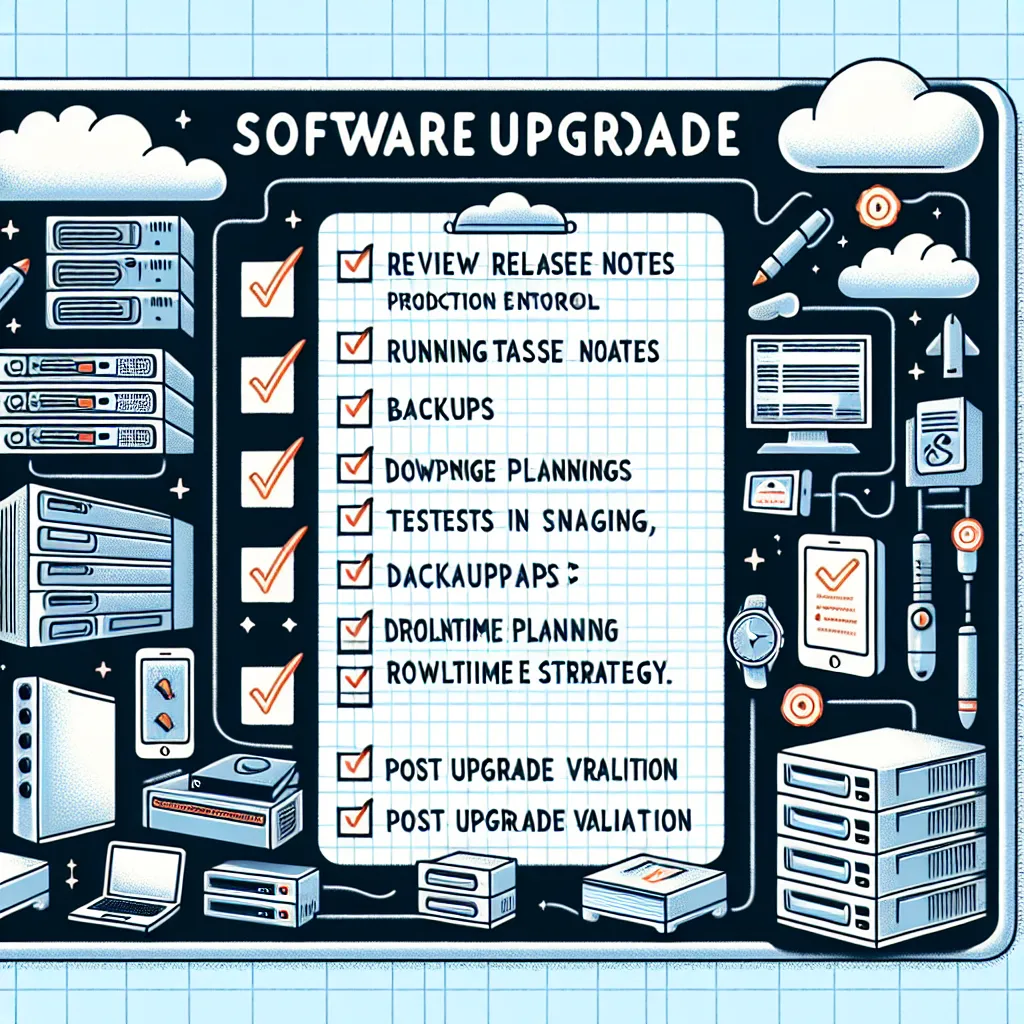 Upgrading to a new software version in a production environment is a critical process. A well-structured checklist can make the upgrade go more smoothly. This checklist should be tailored to meet the specific needs of each system and updated regularly to reflect changes in either the production environment or the software version in use.