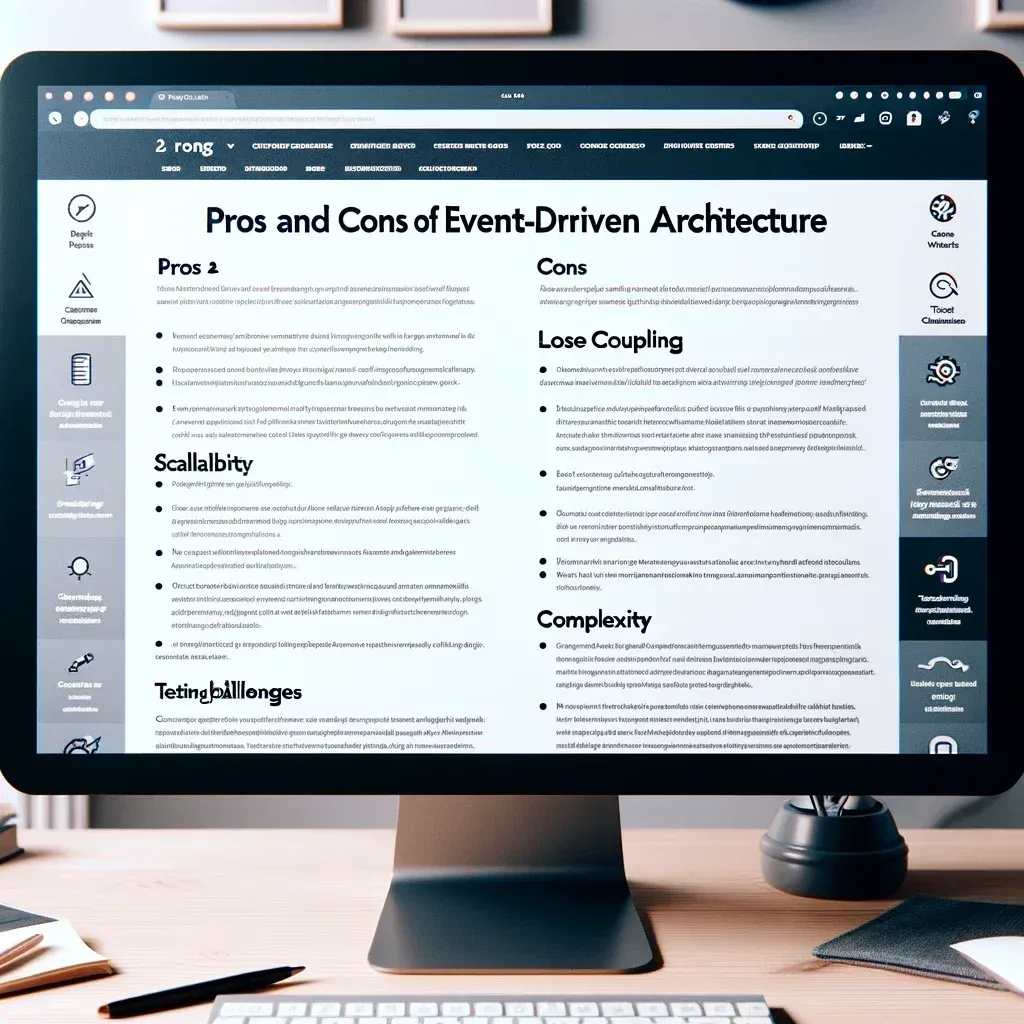 Event-Driven Architecture offers a flexible and scalable approach to building software systems, particularly well-suited for applications that require real-time responsiveness and scalability. However, the benefits come with trade-offs in terms of increased complexity and potential challenges in testing and error handling. When considering EDA, it’s important to weigh these pros and cons in the context of your specific application requirements and organizational capabilities.