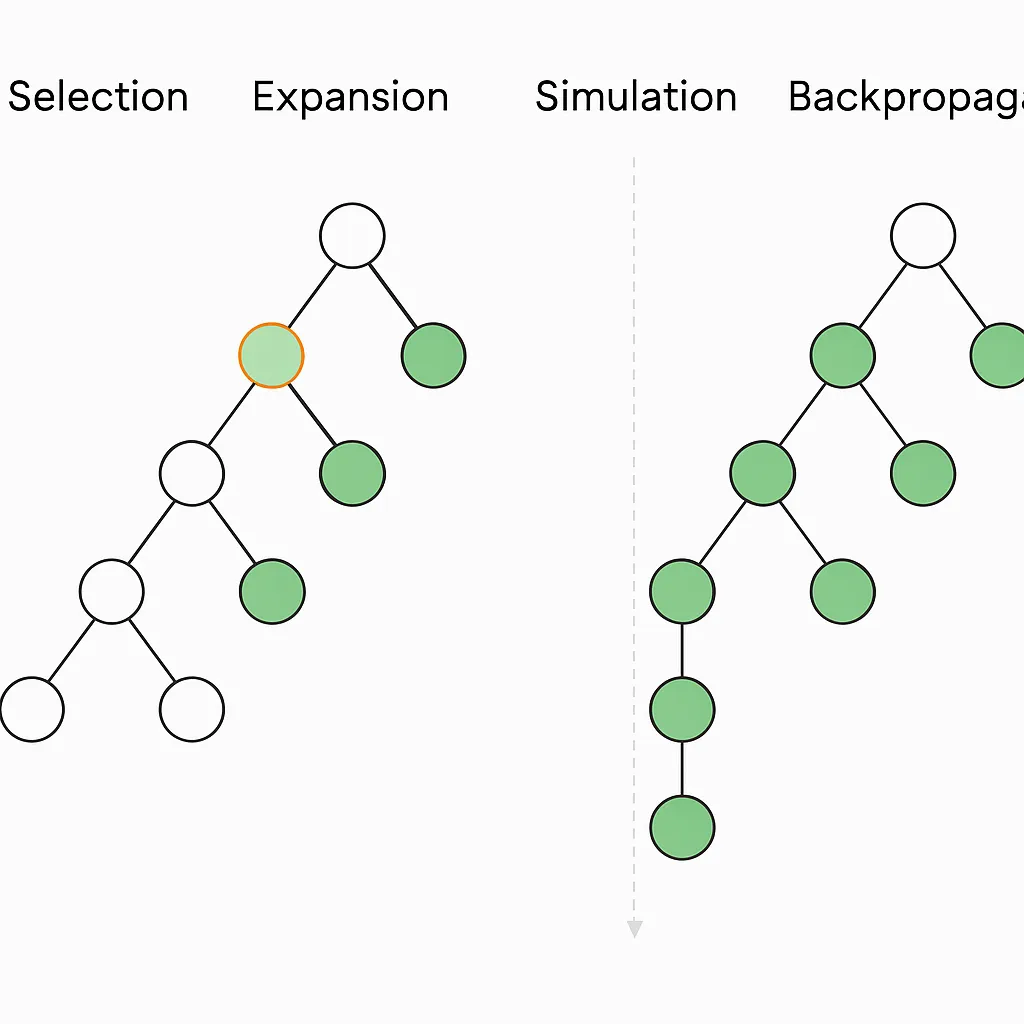 - Selection: Traverse the tree from root to leaf using a selection policy (e.g., UCT: Upper Confidence Bound for Trees).