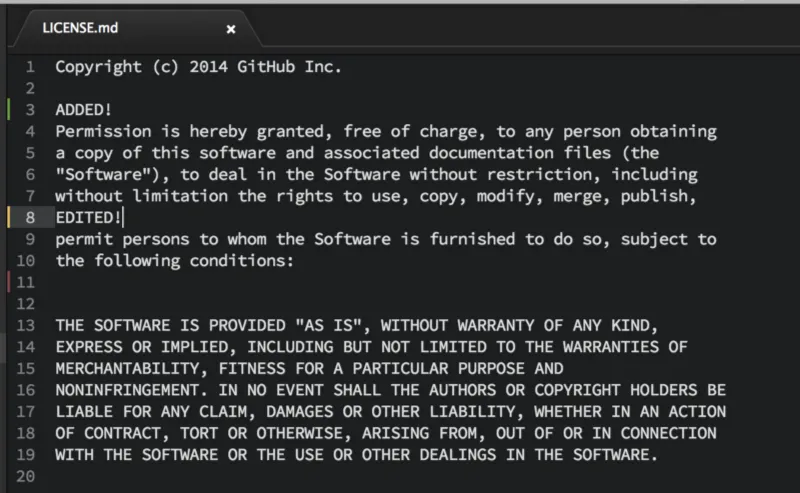 此功能在編輯器的邊界標識出自上次提交以來被添加、編輯或刪除的行: