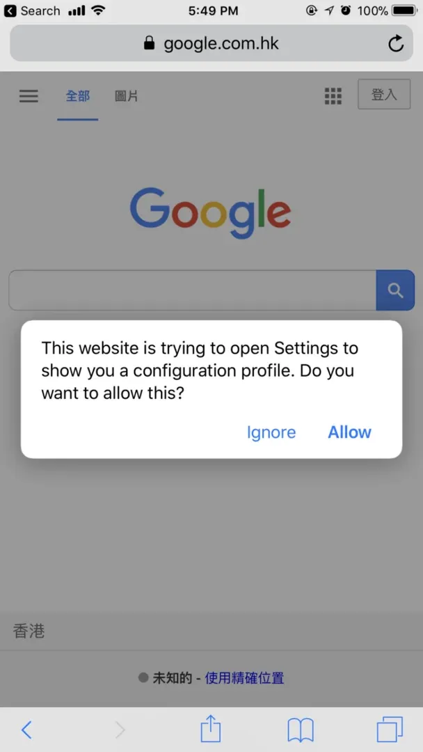 接著,打開你的iPhone上的Safari並導航到chls.pro/ssl。點擊”允許”下載並安裝憑證。