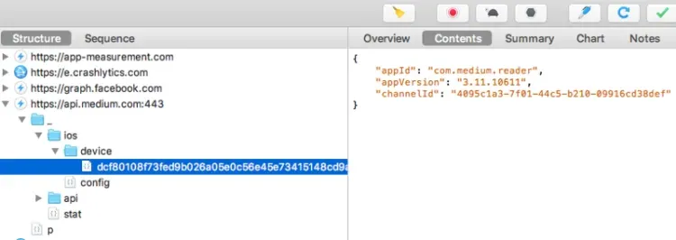 重啟你筆記本電腦上的Charles。你現在應該可以看到流量,包括HTTPS內容。例如,可以捕獲來自iOS上的Medium應用程式的流量,如下所示: